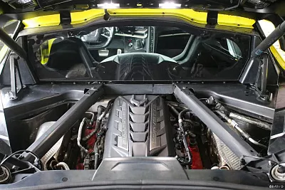 Chevrolet Corvette C8 2019 года — это кабриолет, который сочетает в себе технологичность и спортивный стиль. Автомобиль оснащён бензиновым двигателем объёмом 6,2 литра и мощностью 495 лошадиных сил, что обеспечивает отличную динамику. Робот-коробка передач делает управление более комфортным и упрощает процесс вождения.